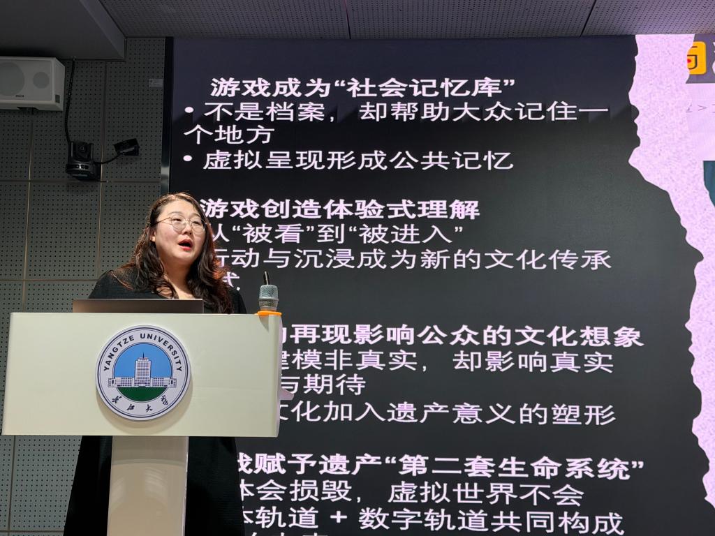 讲座中,卢雅怀以“文化遗产在数字时代的保护与再生”为切入点,结合巴黎圣母院火灾后的数字化重建案例,引出文化遗产在当代所面临的挑战与机遇。她指出,电子游戏不仅是娱乐产品,更是一种新型的“社会记忆库”,能够通过沉浸式体验重构公众对文化遗产的认知与情感连接。