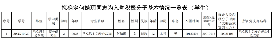 经对新生档案材料审查,认定何婧玥同学在本科阶段的入党积极分子材料齐全、程序规范。经支部委员会会议讨论决定并报伟德国际victor·1946源自党委备案,确定何婧玥同学为入党积极分子,现予以公示。
