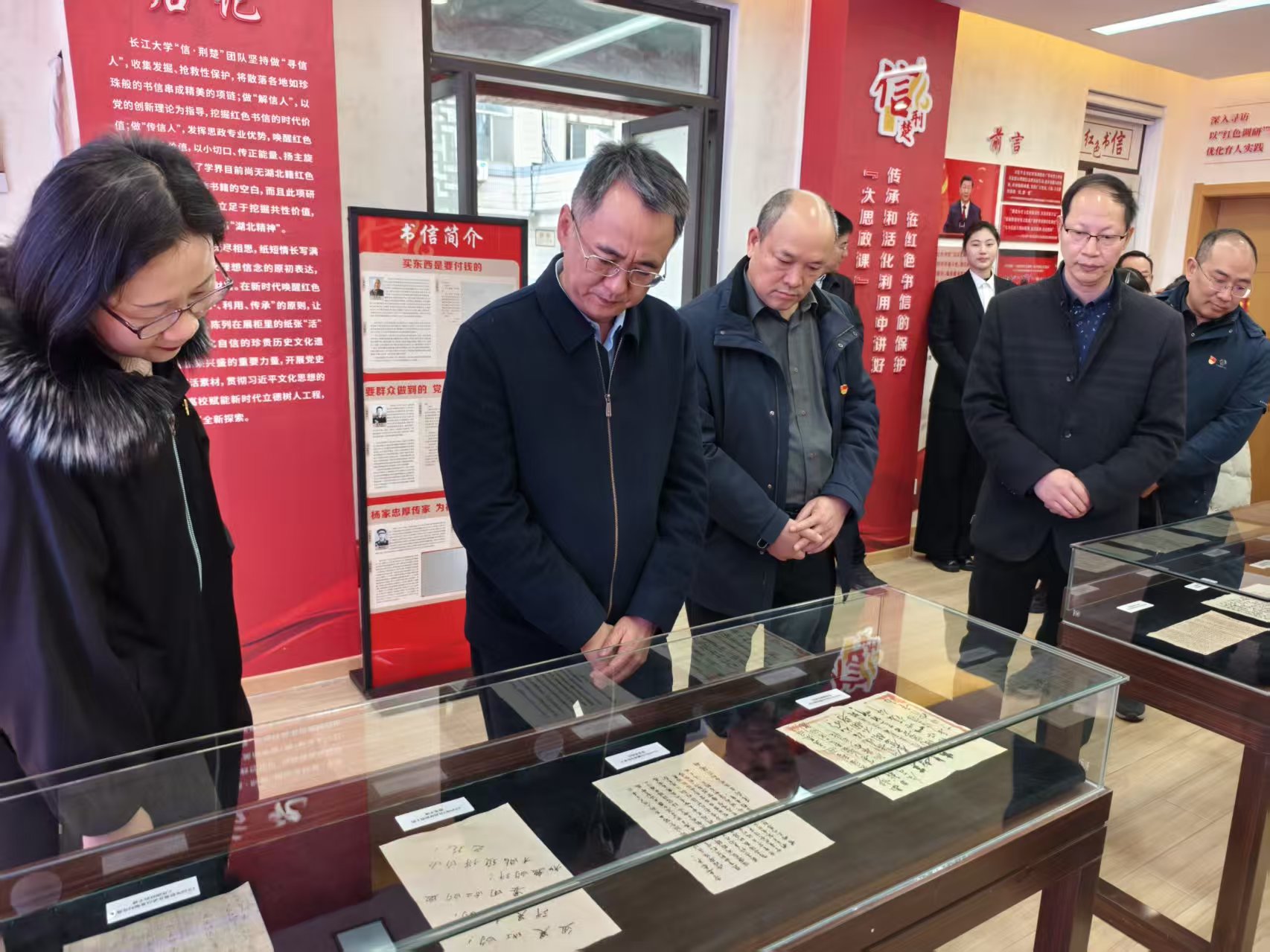 当天上午,学校党委书记王建平走进伟德国际“信·荆楚”思政育人展览馆,实地调研“大思政课”建设工作,并就如何进一步用好红色书信资源、深化思政育人实效进行现场指导。“信·荆楚”团队学生负责人袁田以“在红色书信的保护传承和活化利用中讲好铸魂育人‘大思政课’”为主题,介绍了展馆建设情况,详细汇报了团队近五年来围绕“寻信、解信、传信”所开展的育人实践工作。支部党员吴宇洁以“从红色书信中读懂树立和践行正确政绩观的三重答案”为题讲授微党课,她以红色书信为切入口,从“政绩为谁而树、树什么样的政绩、靠什么树政绩”三个维度,引导在场师生从中探寻新时代政绩观的精神密码。