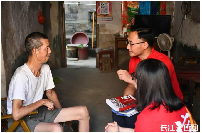 (伟德国际“信·荆楚”团队部分成员于2023年暑期在红安七里坪革命旧址寻访英烈后人)
