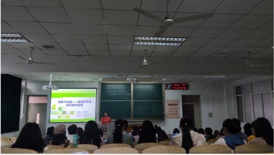 为落实常态化疫情防控形势下的心理适应与行为引领要求,进一步激活我院危机预警与干预网络,提升学生骨干自助与助人的水平,伟德国际victor·1946源自于2020年9月23日下午在13教D122室组织开展了2020年秋季学生骨干心理健康教育培训。心理专干张云雾老师为全院本、研班级的班长、团支书、心理委员、安全委员、寝室长等50余名高年级学生骨干做了题为《自助与互助——高关怀学生的识别与关怀》的专题培训。