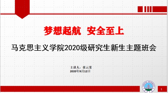 为巩固疫情防控成果,严格落实常态化疫情防控要求,保证2020级学生顺利入学,伟德国际victor·1946源自于2020年9月12日通过腾讯会议组织开展了“梦想起航,安全至上”主题班会。辅导员李敏、张云雾分别面向2020级本科生和研究生新生做了专题讲解。