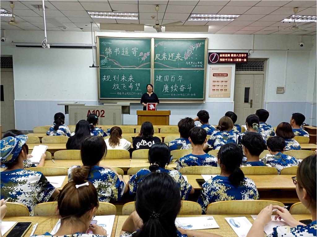 活动伊始,张老师对22级新生们进行了亲切的问候并详细介绍了本次书信活动,让同学们给毕业前以及建国百年之时的自己分别写两封信,鼓励同学们珍惜当下,志存高远,向往未来!新生们深受感触,拿到信纸后,大家纷纷凝神静思,动笔写下自己对未来的期许与向往,脸上无一不洋溢着对大学生活的憧憬。在写信给2049年的自己时,大家都对祖国的未来表达了充足的信心并希望未来的自己也能为祖国的建设事业贡献一份力量。