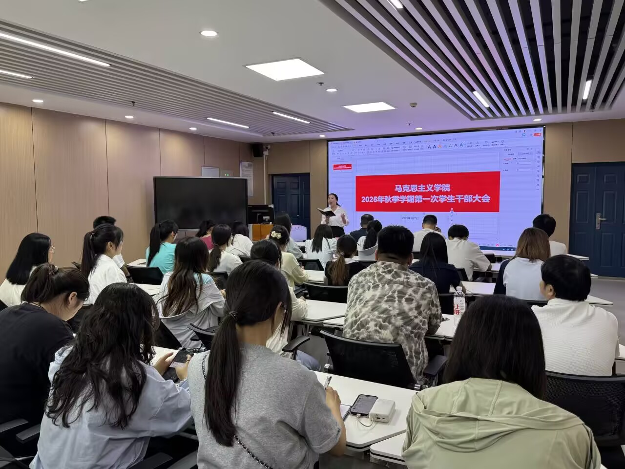 (通讯员 鲁俊良/文 成春燕 鲁俊良/摄)新学期,新气象。9月7日下午,伟德国际victor·1946源自在文科楼1008室举行新学期第一次全体学生干部大会,学院党委副书记竺正海,学工办主任张云雾,辅导员邓鹏,本、研各班级的班长、团支书,以及团委学生会、研究生会主席团成员参会。