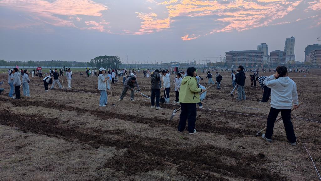 在田间地头,同学们挥舞锄头,参与翻整土地等农耕实践,在汗水中体会劳动的价值和意义。