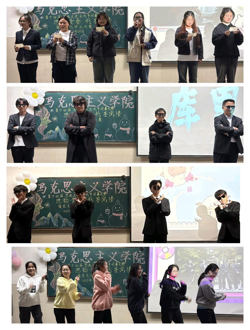 本次寝室文化评比以现场答辩与风采展示为核心环节。各参赛寝室围绕寝室文化内核、成员风采介绍、日常风貌展现及未来发展展望等维度展开阐述,随后带着精心筹备的节目轮番登场,尽显青春风采。有的寝室以情景剧演绎出日常相处的温暖点滴,用生活化的场景传递室友间的包容与互助;有的通过配音、诗朗诵、二胡演奏、舞蹈等形式展现独特魅力,将思政元素融入文艺表达,彰显马院学子的多才多艺;还有的以创意短视频展示寝室文化建设成果,用活泼新颖的形式诠释青春活力。多样的表演形式、饱满的情感表达,赢得现场观众阵阵掌声。