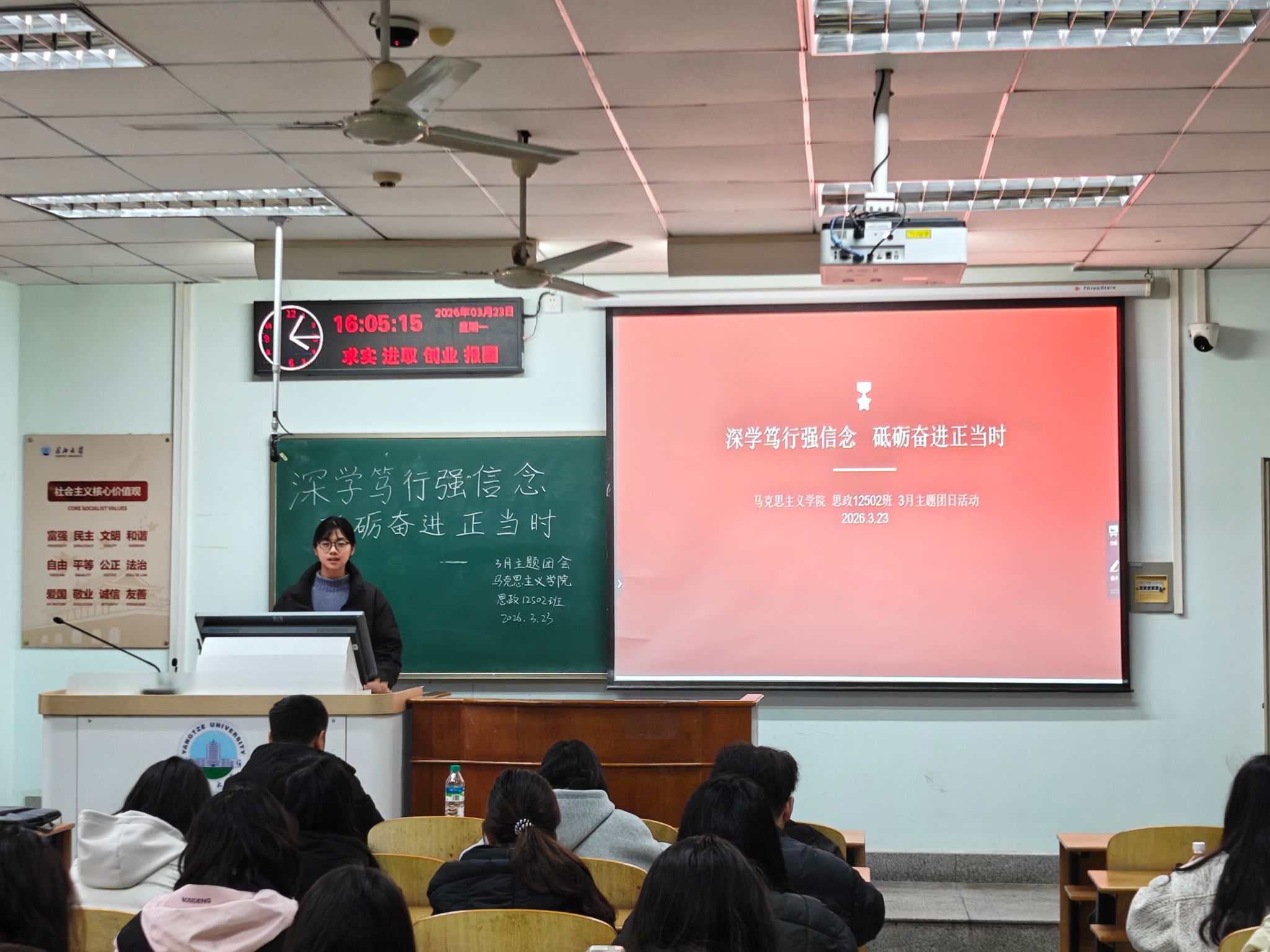 各团支部组织团员青年深入学习了习近平总书记近期重要讲话和重要指示批示精神,重点研读了《让愿担当、敢担当、善担当蔚然成风》等重要文章。同学们还集中学习了全国两会精神,开展了集中研讨。大家一致认为,要准确领会和把握“十五五”战略部署,强化投身强国建设的使命担当。