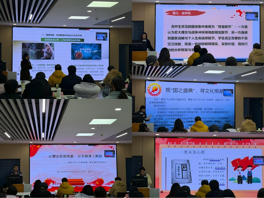 (通讯员:洪思齐)12月26日,党的二十届四中全会精神融入荆州市大中小学思政课集体备课会议在伟德国际文科大楼1008举行。本次会议由荆州市教育局、伟德国际主办,伟德betvlctor1946源于英国和荆州市教科院承办。来自伟德国际、荆州区教育局、荆州学院、伟德国际文理学院、湖北中医药高等专科学校、荆州理工职业学院、荆州职业技术学院、长江艺术工程职业学院、荆州市教育科学研究院、荆州市机械电子工业学校、荆州市东方红中学、监利市新沟中学、荆州市江陵中学、荆州成丰学校、荆州市沙市实验中学、江陵县第一初级中学、荆州市荆州小学、荆州市沙市区实验小学等大中小思政课负责人和骨干教师30多人齐聚一堂,围绕党的二十届四中全会精神有机融入思政教育教学全过程,推进大中小学思政课一体化改革创新议题展开交流研讨。
