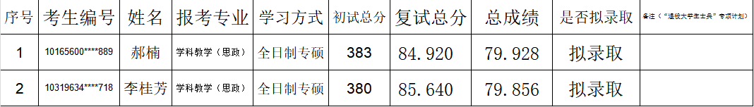 按照学校2026年研究生招生复试工作安排,我院新增全日制专硕招生计划2个,现从递补拟录取考生中依次拟录取,现将拟录取考生的复试成绩及结果予以公示,复试成绩及拟录取结果见附件。